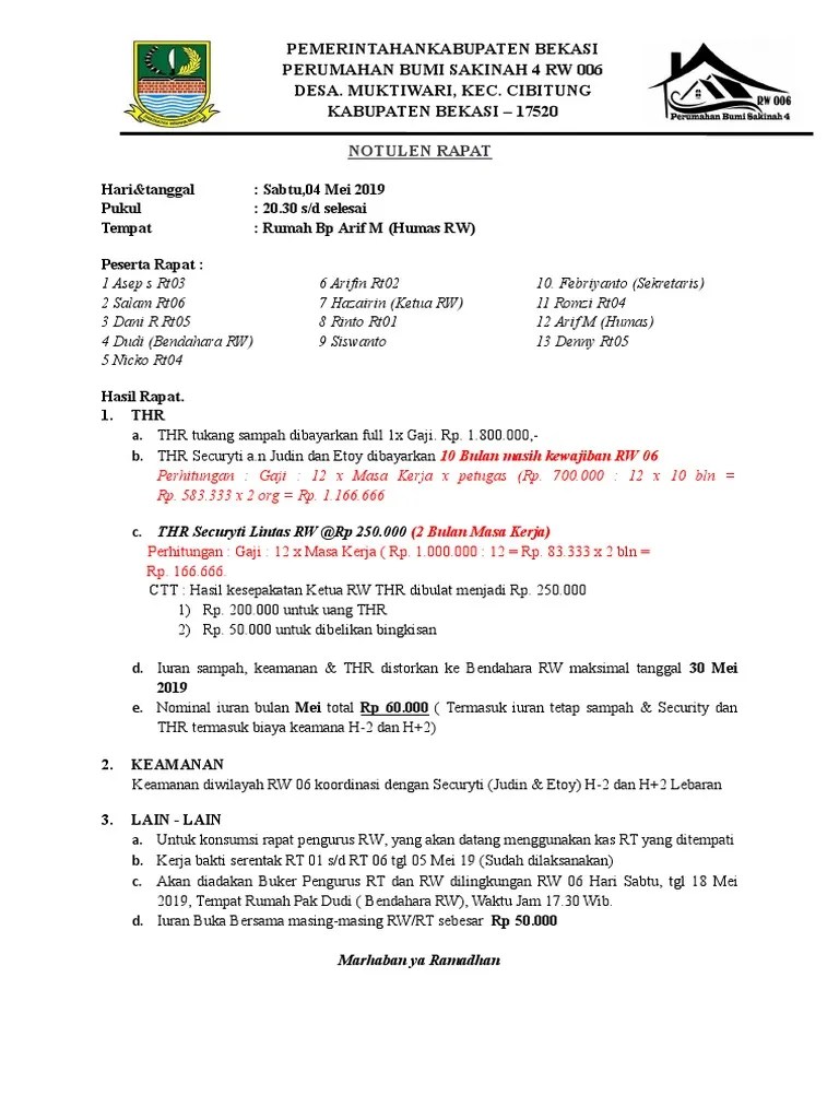 Rapat rt 02 rw 01. Buka artikel ini untuk melihat contoh notulen rapat! Pemimpin rapat nauri lukmi spd. Top pdf contoh surat undangan rapat rt dikompilasi oleh 123dok.com. Hasil keputusan rapat rt 03/rw 27 dilaksanakan tanggal 4 november 2014 pembahasan :
